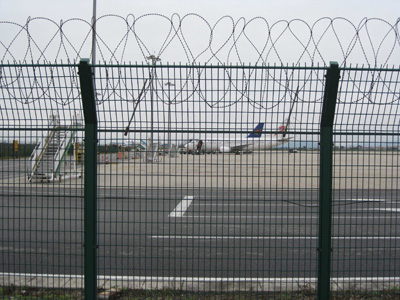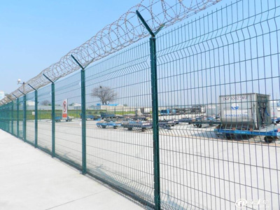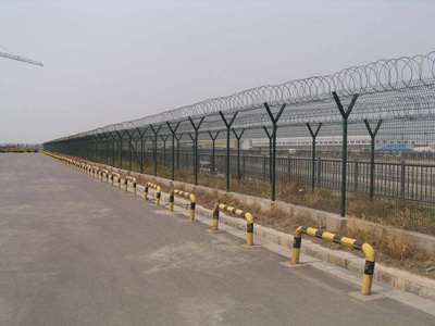 機(jī)場護(hù)欄網(wǎng)又稱作“Y型防御護(hù)網(wǎng)”,是由V型支架立柱加強(qiáng)型焊接片網(wǎng),防盜連接件和熱鍍鋅刀片刺網(wǎng)組成強(qiáng)度和防御性級(jí)別很高。被應(yīng)用在機(jī)場,基地等場所。